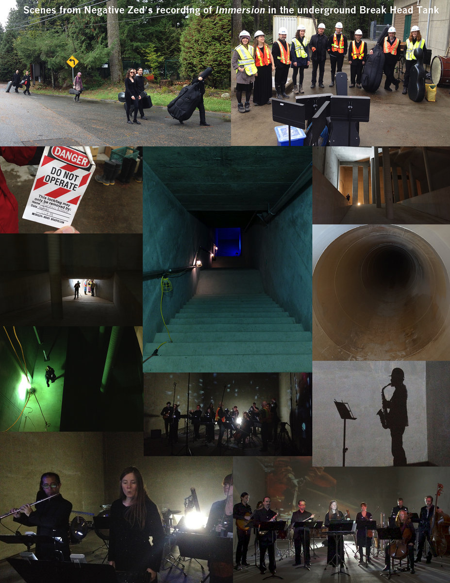 In preparing a documentary on the building of the plant, and noticing that the tank boasted an impressive 20+ seconds of reverb, Metro Vancouver staff reached out to composer Jordan Nobles to consider the unique opportunity to compose a new musical work for performance in this underground chamber, before the tank was permanently filled with water. The original plan was to have an audience descend into the break head chamber for the performance, but safety concerns made this impractical. In the end, it was decided that the musicians would perform in the space and the performance would form the basis for the documentary that would explore a piece of the water system normally unseen. Shortly afterward, the Break Head tank began its service as part of Metro Vancouver's water system, and was flooded with water forever.