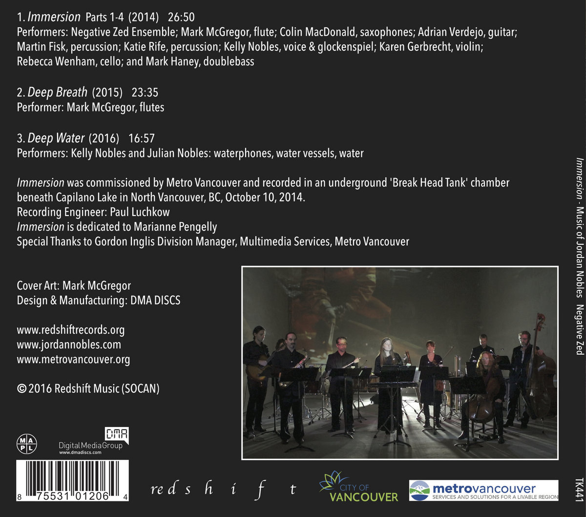Nobles’ piece, fittingly entitled Immersion, is a four-part, 27-minute suite for mixed instruments and voice, perfectly crafted to exploit the break head tank’s unique acoustics. This recording was done in four single takes, without any overdubs, edits, or audio effects. This is, essentially, exactly how it sounded in this incredible space on a chilly October morning in 2014.